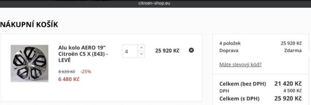 Cena za 1ks (pneu nebo disku) od 175,- Kč.